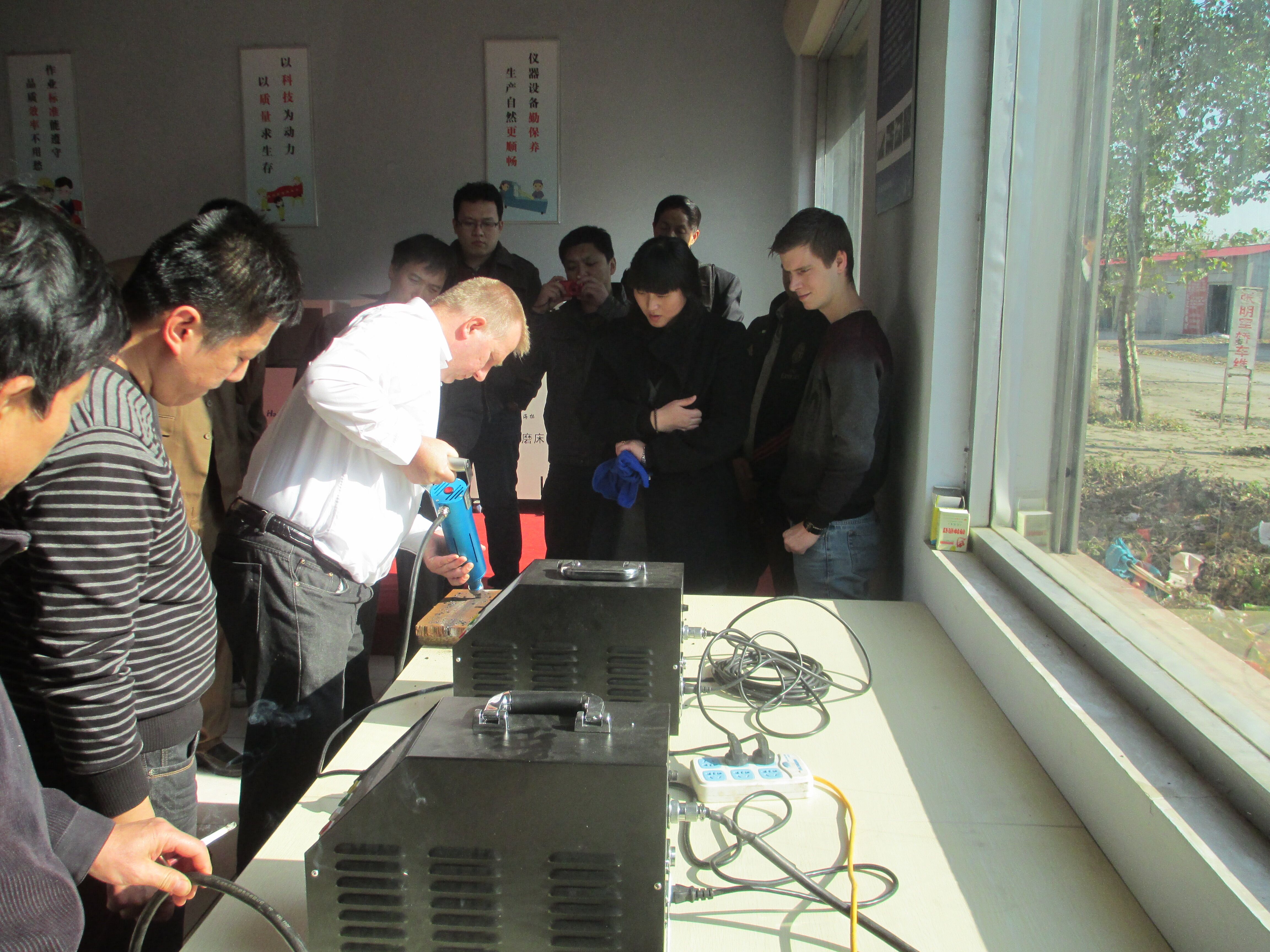 美順帶領(lǐng)客戶試驗超聲沖擊槍